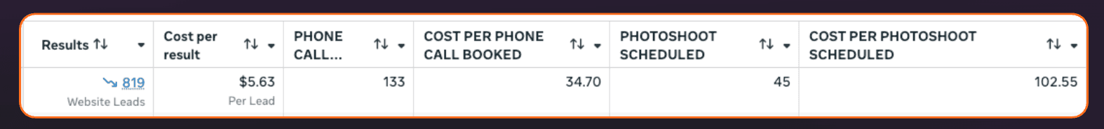 We built out new campaign structures, focused on implementing offline conversions for booked calls and booked shoots
