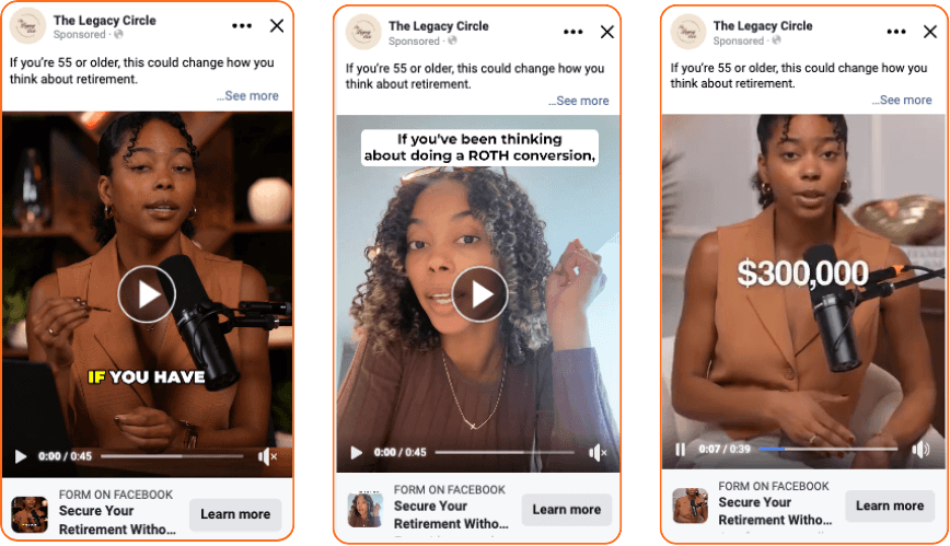 Target audience: 45–65, $100K+ HH income, rollovers + investable assets