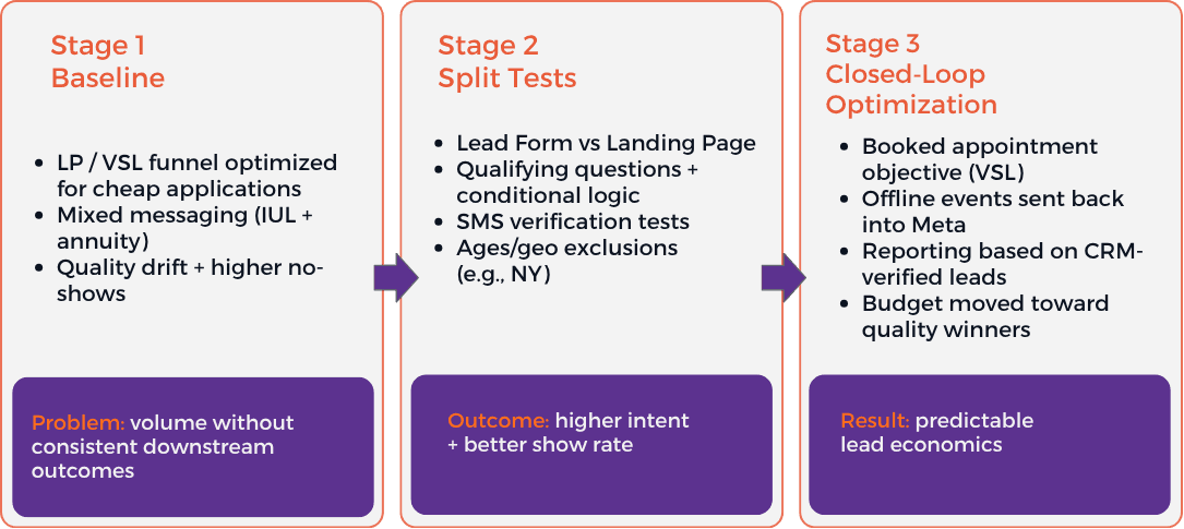 We moved from “more leads” to “better leads” by changing the objective and the gatekeeping.